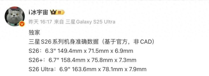 近日,博主@i冰宇宙 的几份爆料中提到了三星Galaxy S26系列的大量细节信息。